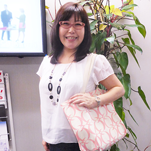 O様の女性らしくて、やさしく包み込むような雰囲気をピンクのフレームで表現しました。